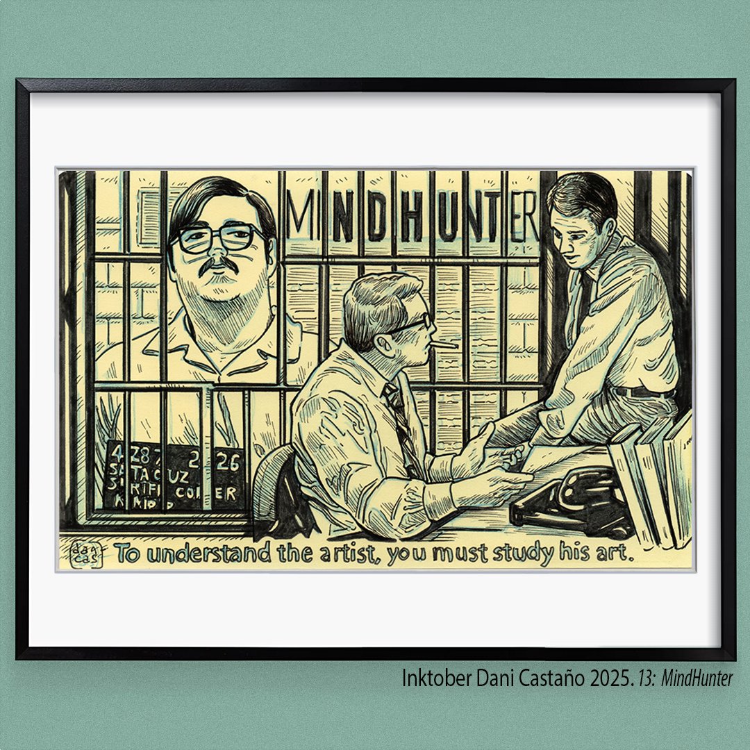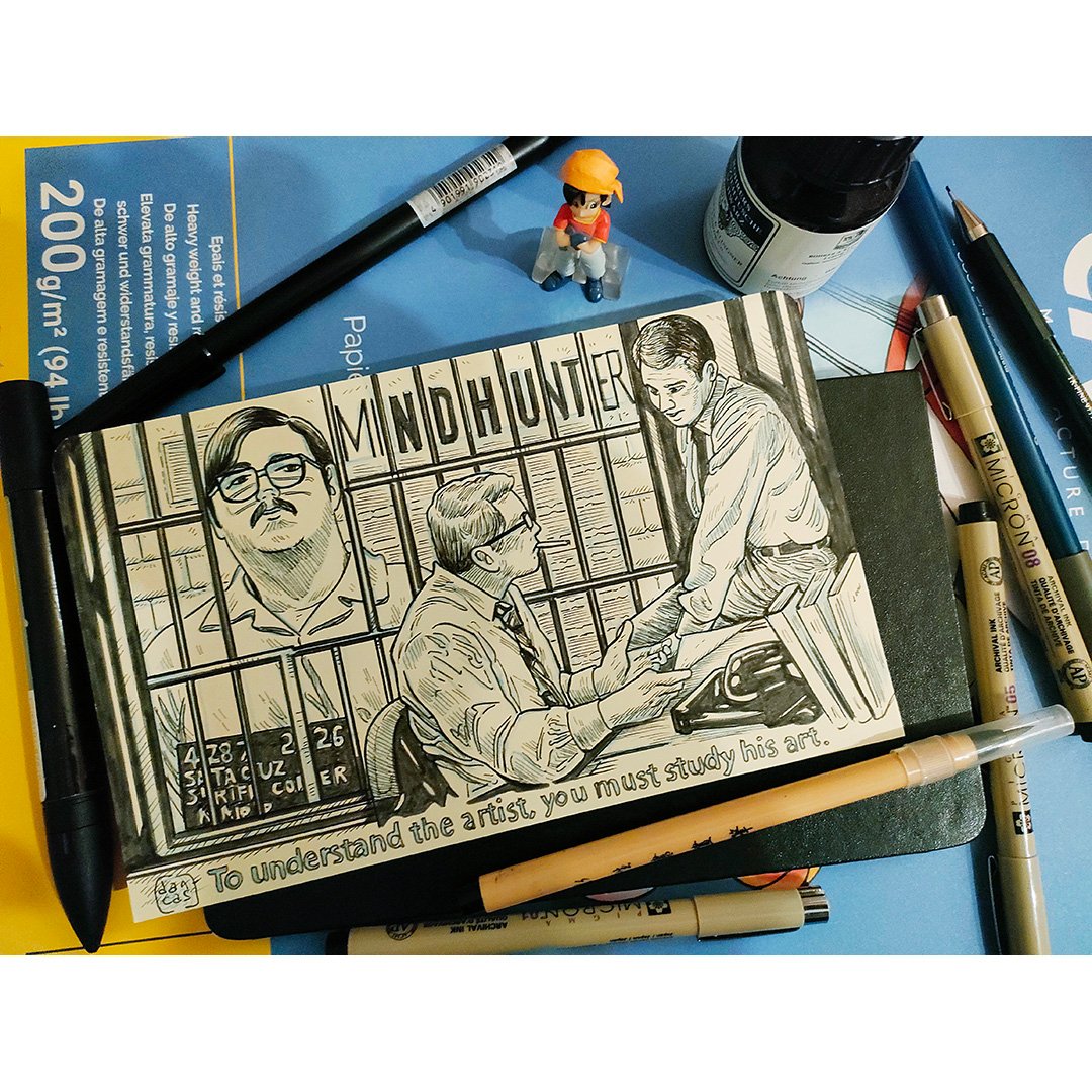 Ilustración original sobre la serie Mindhunter tamaño aproximado A5 (21x13cm), tinta sobre papel de 100 gramos satinado.
